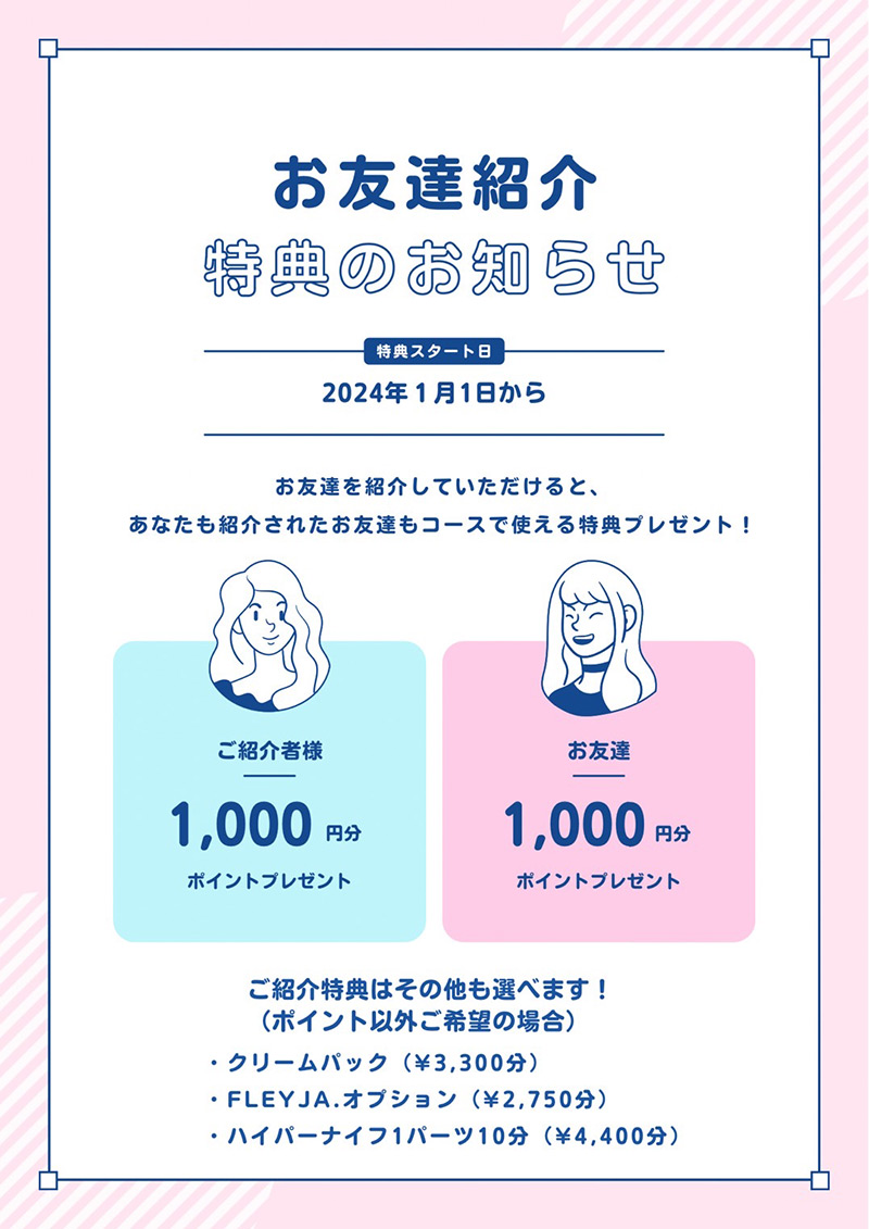 あなたも紹介されたお友達もコースで使える特典をプレゼントします!