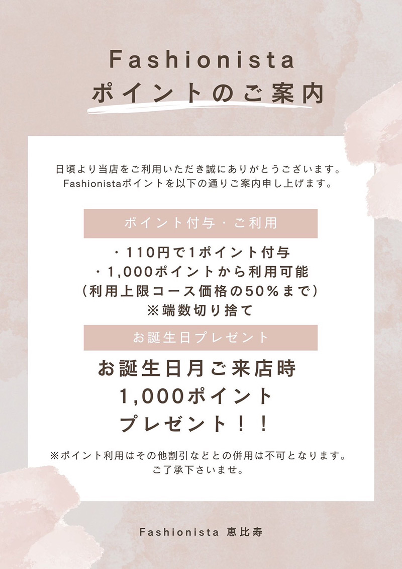 Fashionistaポイントを以下の通りご案内申し上げます。