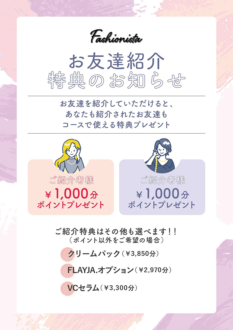 Fashionistaでは、お友達を紹介していただけると、